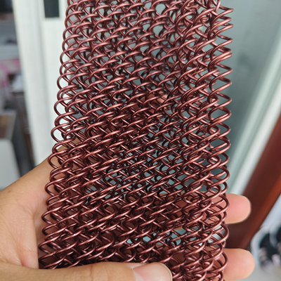 Red Decorative Aluminium Metal Mesh Chain Link coil Curtain Drapery Fabric exterior decorative screen for rood divider